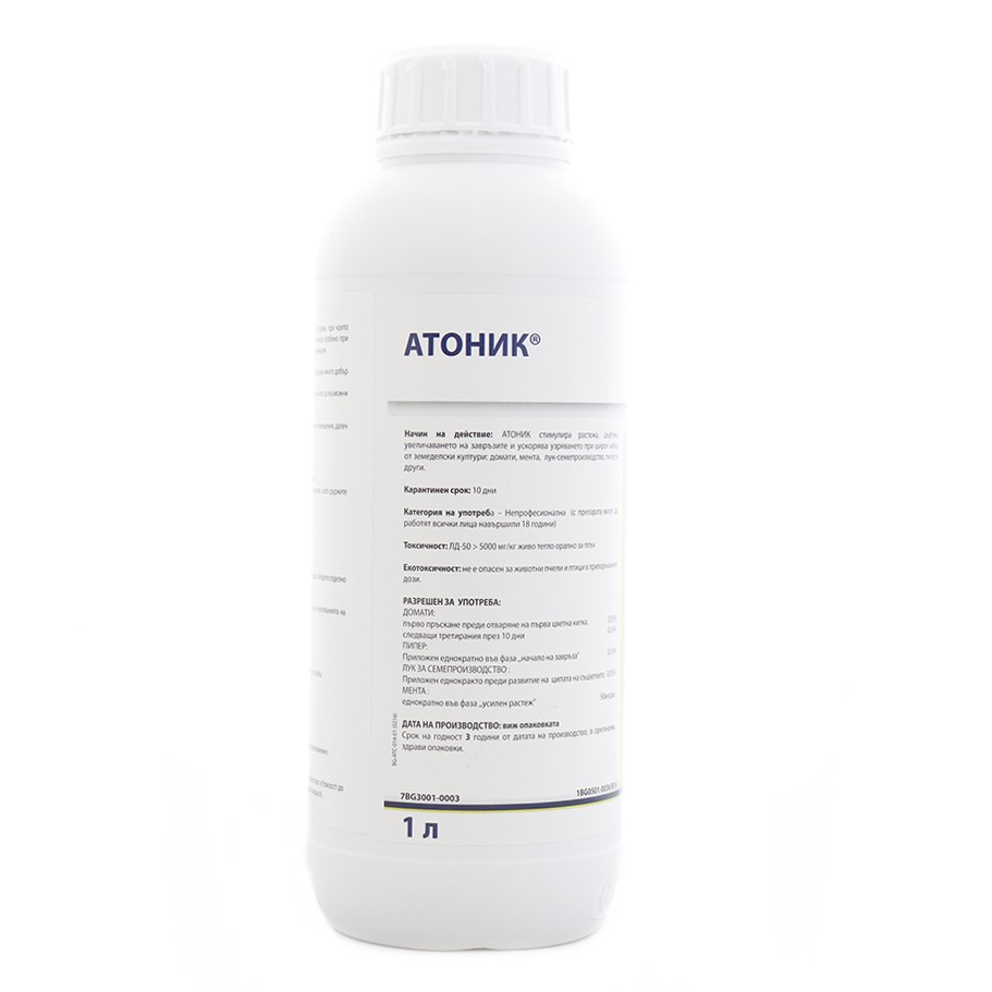 Атоник е високоефективен течен растежен регулатор, синтезиран за медицински цели, а по-късно е установено силното му стимулиращо влияние върху развитието на редица земеделски култури.