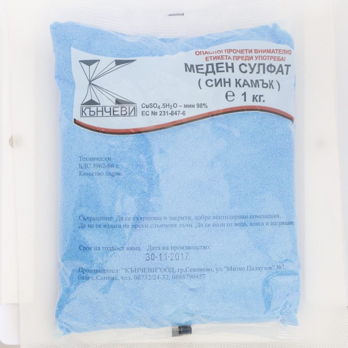 Активно в-во: 99.1% МЕДЕН СУЛФАТ (СИН КАМЪК)
