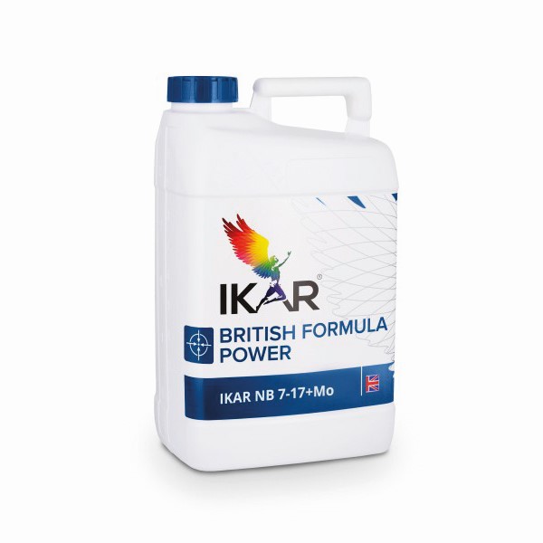 IKAR NB 7-17+0,7 Mo е течен концентриран тор на основата на бор-молибден (B-Mo). Борът стимулира образуването на размножителните органи на растенията, растежа на семената и плодовете. Борът е необходим за усвояването на калий, ускорява транспортирането на захари, развитието на кореновата система, увеличава устойчивостта срещу гъбични заболявания и засушаване. Борът съдейства за по-доброто усвояване на калций и за баланса на калий (K) в растенията. Молибденът е важен микроелемент за много земеделски растения. Молибденът, чрез стимулиране на синтеза на хлорофил, ускорява фотосинтезата и увеличаването на скорбялата, ускорява редукцията на нитратите и синтеза на протеин, увеличава качеството на протеините. Молибденът влияе положително на растежа на подправки и акумулиращи растения. За нормалното развитие на бобовите растения са необходими по-големи количества молибден, отколкото при другите растения. В корените на бобовите растения азотфиксиращите бактерии използват молибден за процеса на фиксиране на азота от въздуха. Поради това, наторяването с молибден подобрява процеса на фиксиране на азота в корените на такива растения. Борът в растенията е неподвижен и затова състоянието на растенията се определя също и от постоянния прием на този микроелемент. Липсата на бор показва дисбаланс между бора и калция – в алкални почви калцият възпрепятства абсорбцията на бор. Суша, недостатъчно количество влага, ниска температура, голямо количество валеж за кратък период от време – фактори, предизвикващи липса на бор. Борът и молибденът са необходими за растенията по време на пълната вегетация, те не могат да бъдат заменени с други елементи.