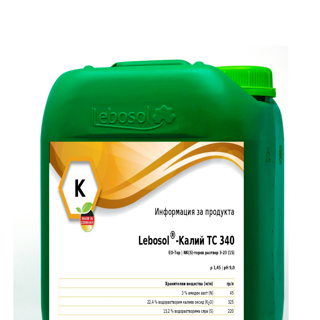 22,4 % водоразтворим калиев оксид (K2O) 325 гр/л ,